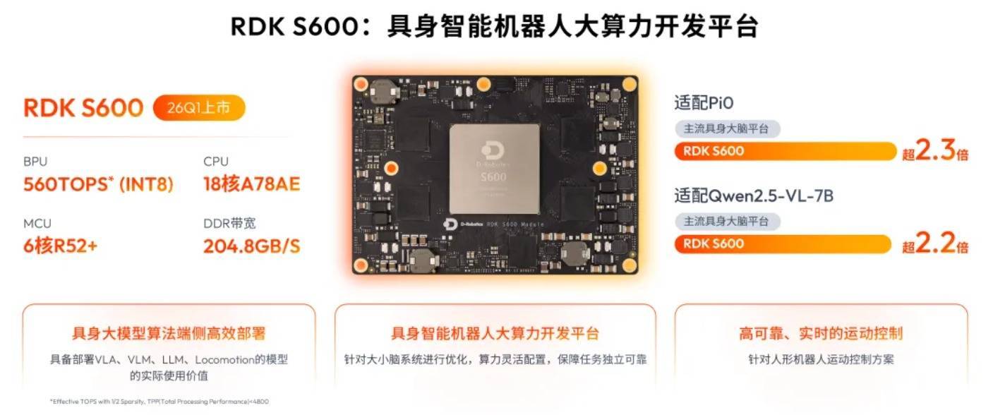 在消费级机器人市场,地瓜机器人旭日系列智能计算芯片截至2024年出货量已超过500万片,科沃斯、云鲸、影石Insta360都是客户;面向人形机器人赛道,傅利叶、加速进化、自变量机器人、星动纪元、逐际动力、广汽集团等行业头部企业已率先成为S600全球首批战略客户。